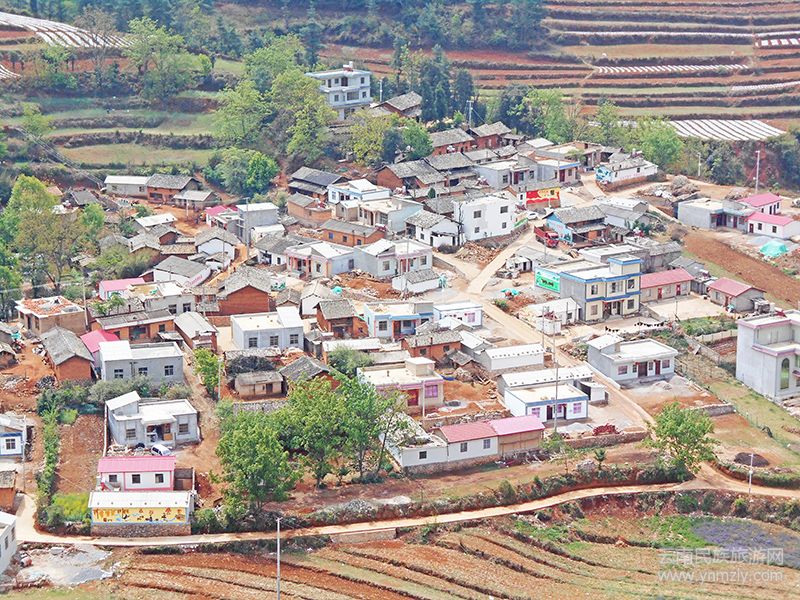 東經(jīng)102°41′—103°33′,北緯25°20′—26°01′,海拔2000米。蜿蜒陡峭的山路下面,是一個三面環(huán)山的小村莊,層層疊疊的梯田和綠樹掩映下,是一棟棟新建的民居。溪水從村邊流過,滋潤著山坳里的彝族群眾。