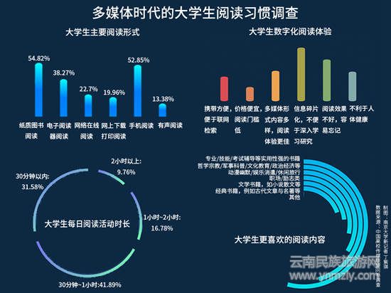 中國(guó)高校傳媒聯(lián)盟調(diào)查結(jié)果顯示,在閱讀時(shí)長(zhǎng)上,31.58%的受訪大學(xué)生日均閱讀時(shí)長(zhǎng)不足半小時(shí),41.89%的受訪者日均閱讀時(shí)長(zhǎng)在半小時(shí)到一小時(shí)之間,閱讀時(shí)長(zhǎng)在2小時(shí)以上的占9.76%。
