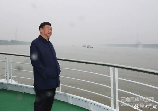 25日上午,習近平總書記驅車一個半小時,從宜昌前往荊州。在荊州港碼頭登上輪船,順江而下,考察長江。船行4個小時,抵達石首港。隨后,他又驅車一個多小時,深入到長江湖南岳陽段考察。