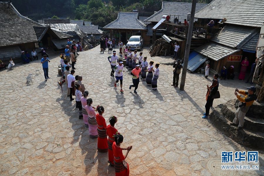 當(dāng)天,恰逢傣族潑水節(jié),參賽運動員以潑水節(jié)儀式“擂大鐘”為出發(fā)信號,在古茶林掩映的綠色生態(tài)賽道上快樂奔跑。比賽現(xiàn)場,身著布朗族、傣族、拉祜族等民族服飾的志愿者用民族歌舞、潑水祈福等形式為運動員加油助威,補給站還專門設(shè)有當(dāng)?shù)靥厣褡迕朗?,讓參賽選手感受到了濃郁的民族特色文化。此外,本次比賽的獎杯和獎牌也獨具特色,融入了古茶林、云海、申遺等設(shè)計元素。