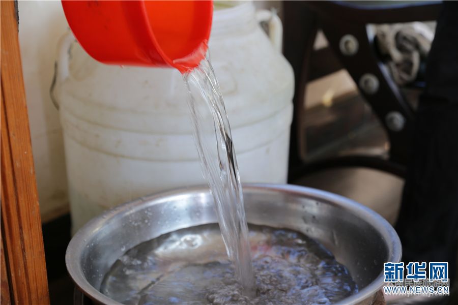 山上的生活條件十分艱苦,生活用水要用摩托車從2公里外村子里運(yùn)送上來。菜、米、油、鹽等生活必須品則要到6公里外的集市購買。新華網(wǎng) 羅春明 攝
