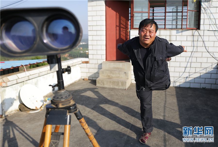 長(zhǎng)時(shí)間的站立瞭望,常常讓張家富感到四肢酸痛,在觀測(cè)間隙他通過(guò)做簡(jiǎn)單的肢體運(yùn)動(dòng)來(lái)緩解疼痛。新華網(wǎng) 羅春明 攝