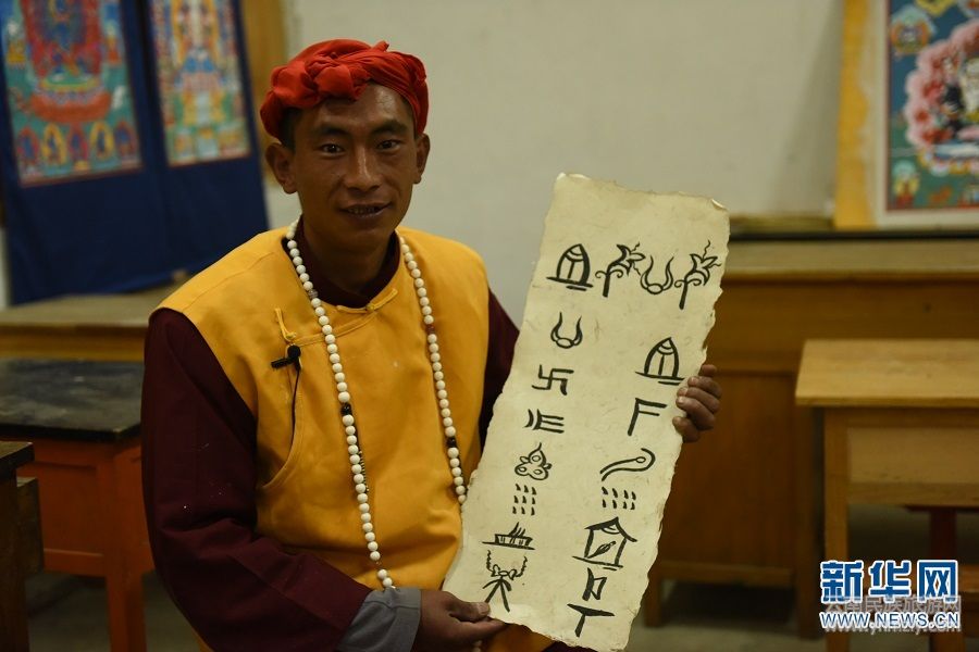 東巴畫亦字亦畫,保留了濃郁的象形文字書寫特征,被稱為研究人類原始繪畫藝術(shù)的“活化石”。2006年5月20日,東巴畫被列入第一批國家級非物質(zhì)文化遺產(chǎn)名錄。圖為和嘉龍展示東巴文字,意為:“好言好語傳千里,山高水深對家門。”(新華網(wǎng) 韓文萍、馬航/文 李寧/圖)