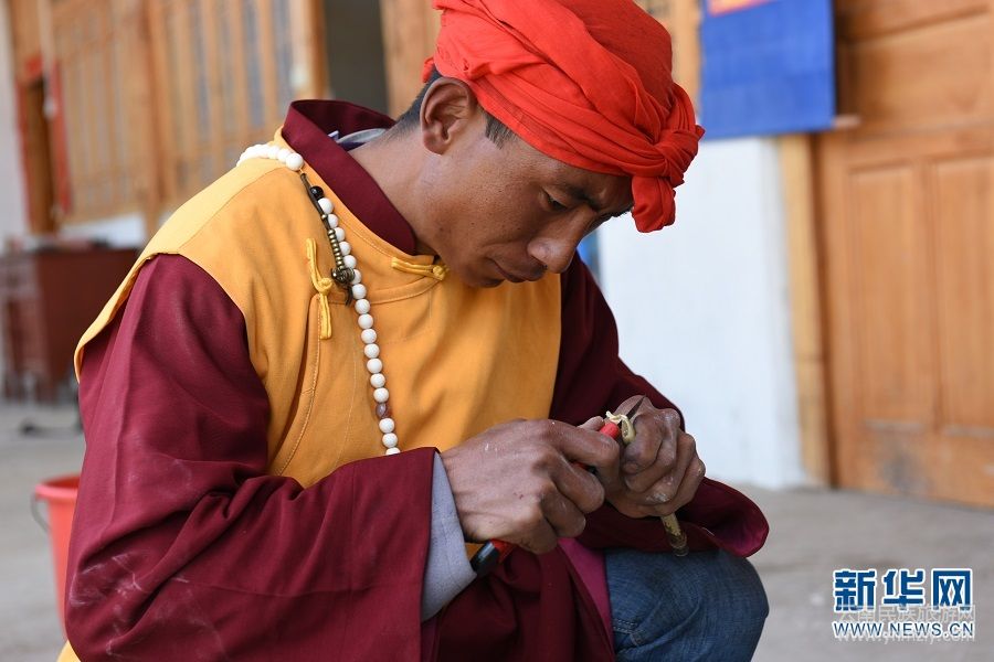 等待畫布晾干的間隙,和嘉龍正在認(rèn)真削竹筆。(新華網(wǎng) 韓文萍、馬航/文 李寧/圖)