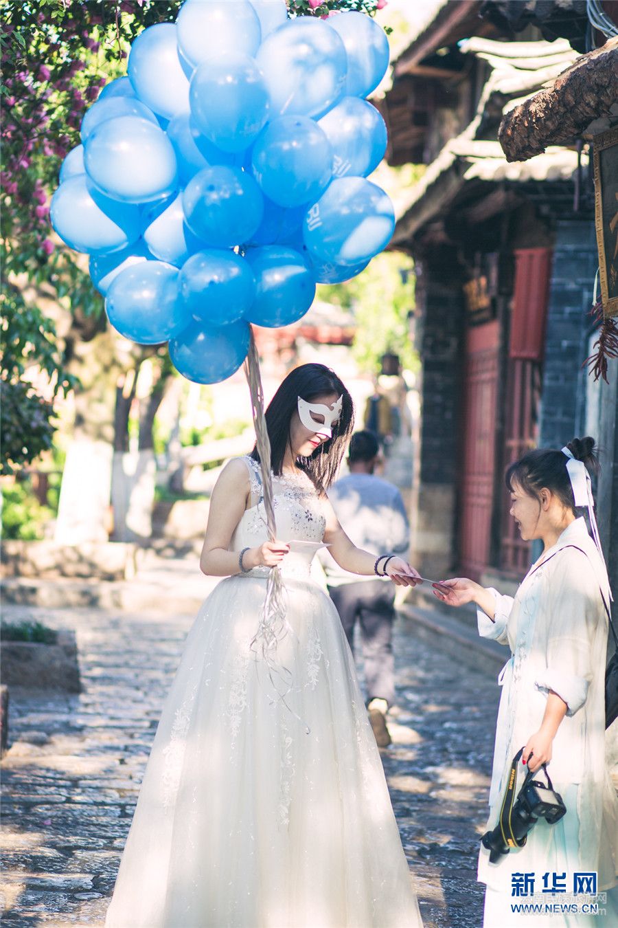 蒙面新娘向游客發(fā)放“告別”明信片。