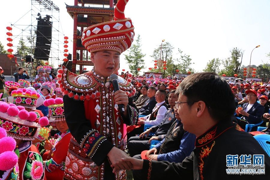 彝族歌手與群眾互動(dòng)。新華網(wǎng) 普凡 攝