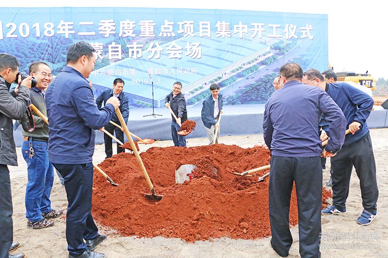 在開工儀式現(xiàn)場,蒙自市發(fā)改局介紹了集中開工項目基本情況,企業(yè)代表齊星集團董事長張家云作表態(tài)發(fā)言,姜偉作動員講話并宣布開工。隨后,參加開工儀式的領導和項目業(yè)主代表為項目開工培土奠基,項目建設就此拉開序幕。