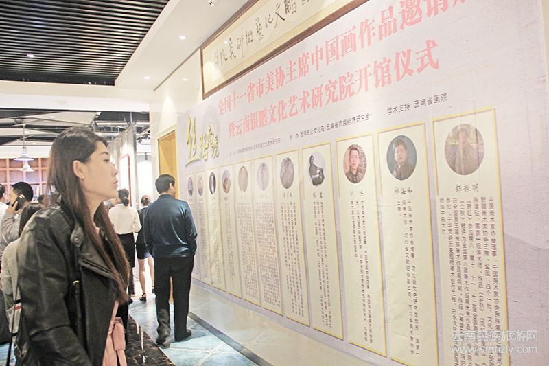 隨后全體嘉賓入館,共同欣賞來自11省市美協(xié)主席的書畫作品。徜徉墨海,領(lǐng)略書畫藝術(shù)的磅礴氣勢(shì),欣賞藝術(shù)家們的精湛演繹。11省市美協(xié)主席的書畫作品,以各自不同的藝術(shù)手法,描繪出他們最熟悉的民風(fēng)民俗、江山湖泊、飛禽走獸等。獨(dú)具地域特色的畫作,將中華大地的精髓付諸于筆端,匯集于絲路南境昆明,在云南銀鵬文化藝術(shù)研究院內(nèi),呈現(xiàn)出一派百花齊放、百家爭(zhēng)鳴的繁榮景象。(浦紹猛)