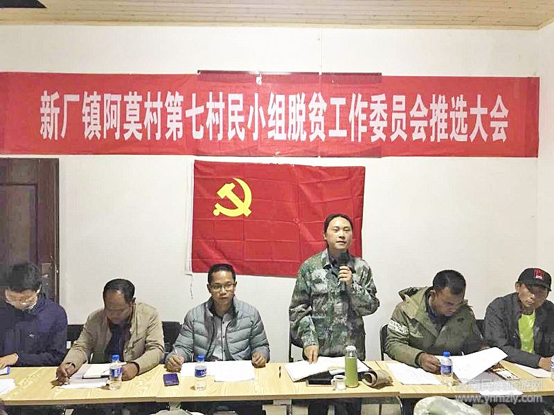 會議上,新廠鎮(zhèn)黨委書記馬玉樺對推選工作作了動員講話,阿莫村黨總支書記主持會議并通報了會前摸底情況。最后,村民們通過自由討論,推選出了巖塊、巖門砍、巖太布里、巖團松、巖布理、娜黑來嘎、巖龍跟七位委員,并逐條講解舉手通過了七組村規(guī)民約。隨后新當選的委員們組織召開第一次會議,推選出了主任、生產(chǎn)委員、生活委員、宣傳委員、治安委員、青年委員,并確定了各自聯(lián)系的互助聯(lián)動小組及工作職責。