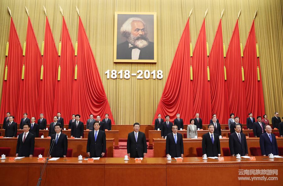 5月4日,紀念馬克思誕辰200周年大會在北京人民大會堂隆重舉行。習(xí)近平、李克強、栗戰(zhàn)書、汪洋、王滬寧、趙樂際、韓正、王岐山等出席大會。新華社記者 鞠鵬 攝