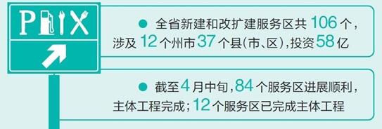高速路服務(wù)區(qū)不僅是休息的驛站、服務(wù)的載體,更是旅游的名片、形象的窗口。一年前,我省把高速路服務(wù)區(qū)整治提升作為全省交通運(yùn)輸工作的重要任務(wù),切實(shí)抓緊抓好。省交通廳積極貫徹落實(shí)部署,研究制定高速公路服務(wù)區(qū)整治提升一年行動計(jì)劃,深入開展改擴(kuò)建和新建工程、基礎(chǔ)設(shè)施提升、環(huán)境衛(wèi)生整治。根據(jù)省政府統(tǒng)一規(guī)劃,全省新建和改擴(kuò)建服務(wù)區(qū)共106個(gè),其中改擴(kuò)建80個(gè),新建26個(gè),涉及12個(gè)州市37個(gè)縣(市、區(qū)),投資概算58億元。