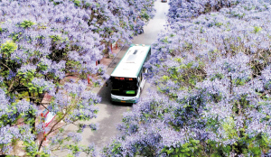 據(jù)了解,這也是昆明最早種植藍(lán)花楹的道路。1984年,中科院昆明植物研究所首次從阿爾及利亞引種了該樹種,與藍(lán)花楹同時(shí)引進(jìn)的還有鳳凰木。這兩種景觀樹都高大優(yōu)美,花開的時(shí)候也特別漂亮。藍(lán)花楹在昆明長(zhǎng)勢(shì)很好,一般在4至6月份都會(huì)開花。在原產(chǎn)地,藍(lán)花楹能開兩個(gè)多月的花,但是在昆明,一般花期只有一個(gè)月左右,比原產(chǎn)地短一些,但并不妨礙市民對(duì)藍(lán)花楹的喜愛。