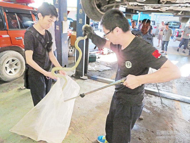 近日,易門縣森林公安局接到110指令稱:“張某停放在縣政府坡腳凌云電腦城旁的轎車爬進(jìn)了一條蛇,請(qǐng)你們處置”。