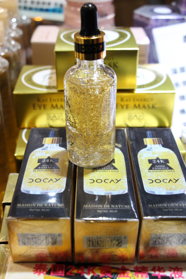 功效有美白補(bǔ)水保濕,修復(fù)受損皮膚,抗過敏,抗衰老,淡化痘印,淡化斑點(diǎn),改善暗沉。泰國(guó)oc24k黃金精華液金箔有為之驚人的滲透力,皮膚細(xì)胞直間大約有50毫微距離相連,平均每5毫微純金粒子迅速附著體液中的低分子透明質(zhì)酸上,清爽保濕從而被深度吸收涂在臉上輕輕按摩,從而使皮膚保持彈性,緊致,美白提亮,亢皺,還能促進(jìn)后續(xù)水乳面霜的更好吸收!