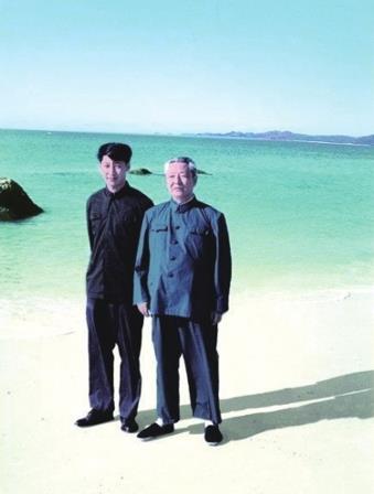 1978年8月,習仲勛與參加暑期社會實踐活動的習近平在海南。(來源:《習仲勛畫傳》)
