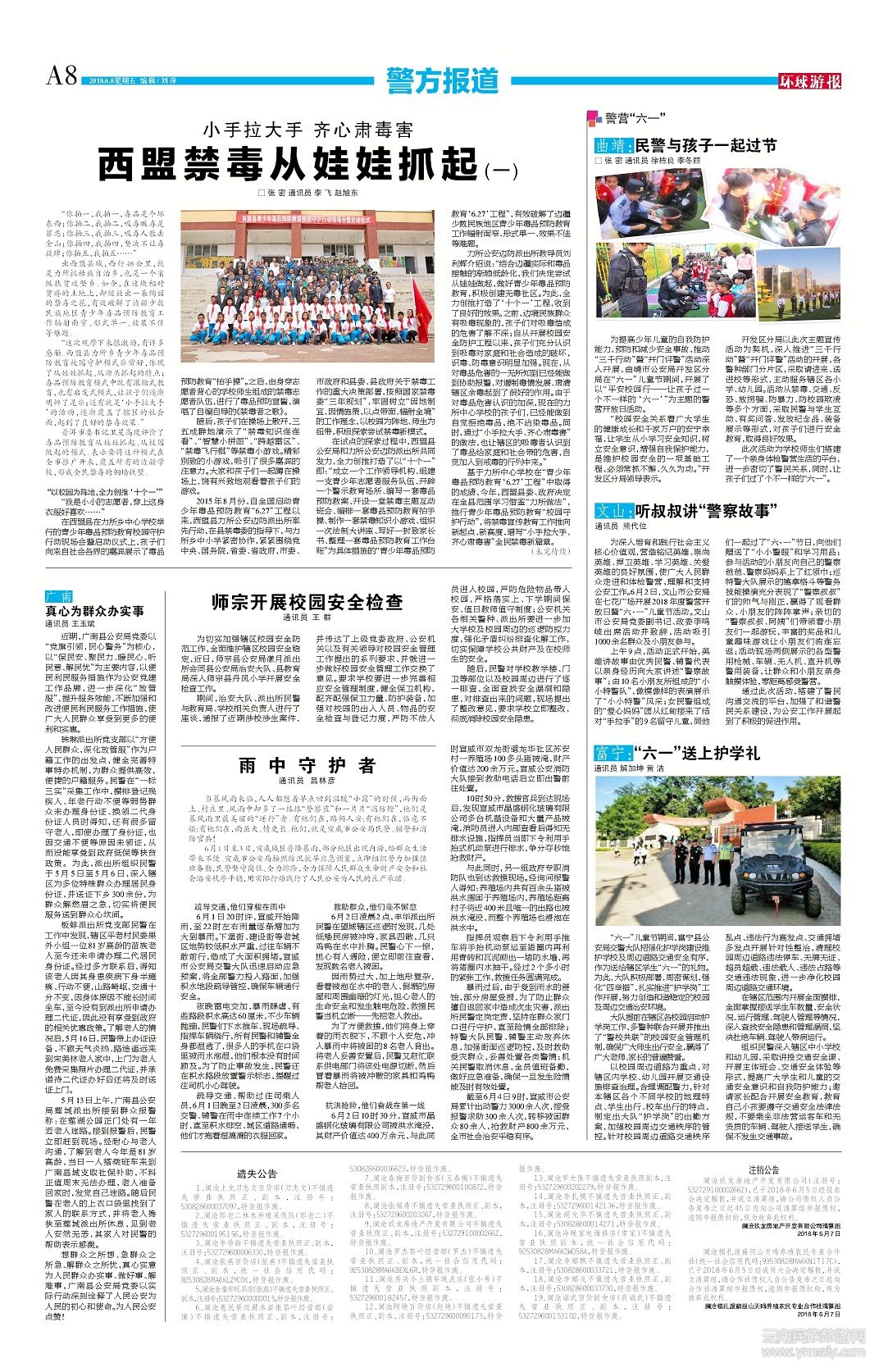 “六一”兒童節(jié)期間,富寧縣公安局交警大隊(duì)把強(qiáng)化護(hù)學(xué)崗建設(shè)維護(hù)學(xué)校及周邊道路交通安全有序,作為送給轄區(qū)學(xué)生“六一”的禮物。為此,大隊(duì)積極部署,周密謀劃,強(qiáng)化“四舉措”,扎實(shí)推進(jìn)“護(hù)學(xué)崗”工作開展,努力創(chuàng)造和諧穩(wěn)定的校園及周邊交通治安環(huán)境。