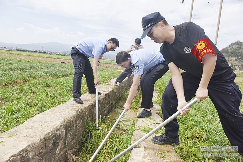 6月5日,是第47個“六五”環(huán)境日,澄江縣公安局開展“美麗澄江 我是行動者”活動。50余名公安志愿服務者來到右所排箐溝,一耙耙,一鋤鋤將河道內(nèi)的垃圾、雜草、淤泥清理出河道,為建設美麗澄江貢獻公安力量。