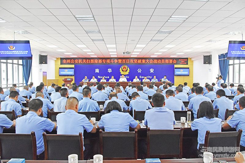 7月25日下午,楚雄州公安機關(guān)掃黑除惡專項斗爭暨百日攻堅破案大會戰(zhàn)動員部署會在南華縣公安局召開。楚雄州副州長、州公安局掃黑除惡專項斗爭領(lǐng)導(dǎo)小組組長、州公安局黨委書記、局長馬聞出席會議并講話,南華縣縣委書記李云升出席會議并致歡迎詞,會議由楚雄州公安局黨委委員、副局長張愛東主持。