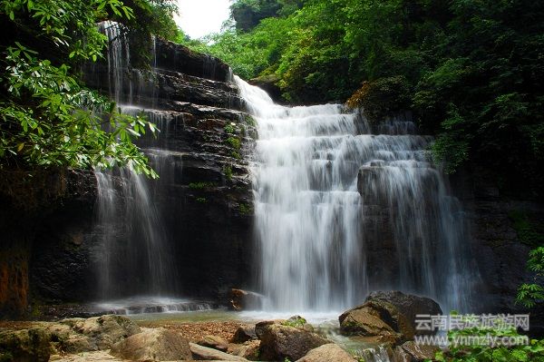 黃連河瀑布群景區(qū)位于大關(guān)縣城東南側(cè),距縣城5.5公里,總游覽面積42平方公里。景區(qū)以瀑布群為主,間有如夢(mèng)如幻的云霧奇峰,威嚴(yán)的參天古木,鳥(niǎo)語(yǔ)花香的山林竹海,形似飛鴿的世界珍稀植物——珙桐,還有情濃似酒的苗寨風(fēng)情。并且立體氣候顯著,有“一山分四季,十里不同天”之說(shuō),有南國(guó)的俊秀,又有北國(guó)的風(fēng)光,山、水、林、洞融為一體,奇、秀、幽、雅構(gòu)成一幅引人入勝的山水畫(huà)卷。