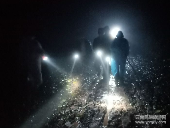 漆黑的環(huán)境伴隨著厚厚的濃霧,給在羊腸鳥道中穿行的搜救民警增加了困難。同時(shí),穿行中,搜救民警還要時(shí)時(shí)查看著手機(jī)有無信號(hào),以便于能夠及時(shí)聯(lián)系到姜某某。