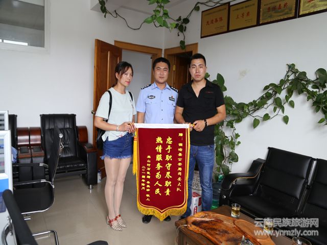 功夫不負(fù)有心人。在瀾滄縣公安局網(wǎng)安大隊(duì)民警的幫助下,李某終于在瀾滄縣發(fā)展河鄉(xiāng)黑山村找到了日夜思念的母親和姐姐。為表達(dá)對(duì)瀾滄縣公安局網(wǎng)安民警的感激之情,才出現(xiàn)了李某和男友贈(zèng)送錦旗的感人一幕。