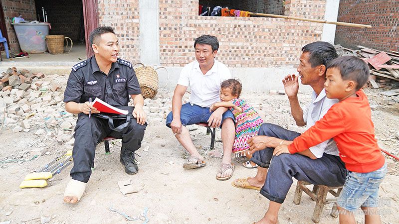 右腳受傷,本該請假養(yǎng)傷的廣南縣公安局警務(wù)保障室副主任李克輝,也拄著拐杖堅(jiān)持走訪。