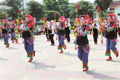 陸祝麗是尼蘇小鎮(zhèn)的彝族村民,也是傳習班的學員之一。在匯報演出中她參與了彝歌、彝舞的表演,她對記者說:“我們要學好彝族文化,將來用具有特色的民族文化吸引四方游客到尼蘇小鎮(zhèn)游玩。”在匯報演出現(xiàn)場,記者所見,一首《彝山小調》用歌聲描繪出了一幅彝族山鄉(xiāng)的風俗畫,一首《留客歌》唱出了好客的彝家兒女的豪邁與熱情;隨著踏跳搖擺的動作,搭配精美的彝族服飾,一段花鞭舞、細花篾帽舞、煙盒舞、扇子舞,無不流露出彝家女子的靈動與活潑。