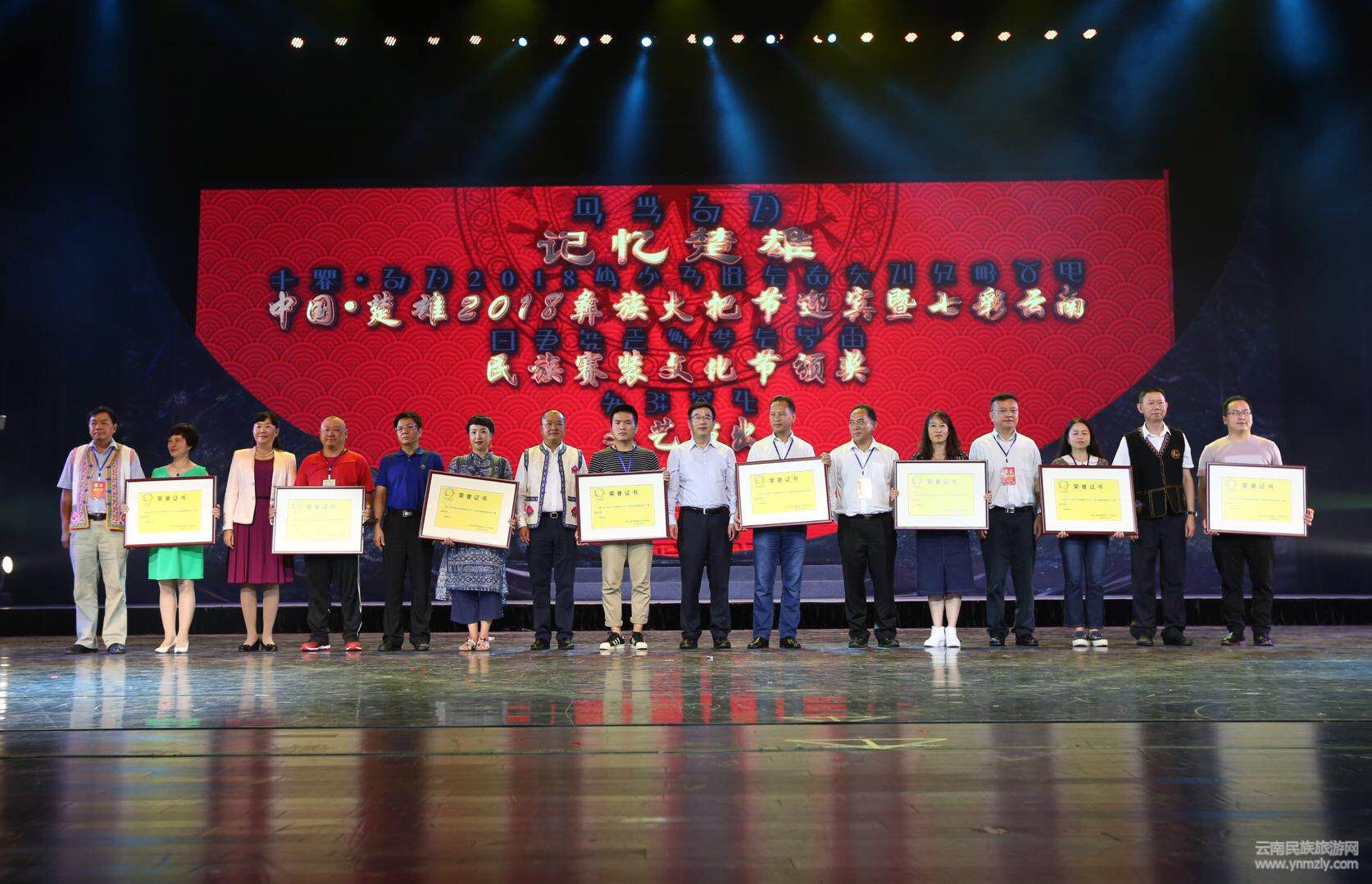 七彩云南2018民族賽裝文化節(jié)頒獎暨中國·楚雄彝族火把節(jié)迎賓文藝演出在楚雄彝州大劇院舉行。云南民族服裝服飾設(shè)計(jì)大賽經(jīng)過3天競技圓滿落幕,評選出十佳傳統(tǒng)民族服裝服飾、十佳創(chuàng)意民族服裝服飾、十佳民族服裝服飾設(shè)計(jì)師、十佳民間刺繡(布藝)能手四個別類的獎項(xiàng)及8個組織獎、8個優(yōu)秀組織獎。