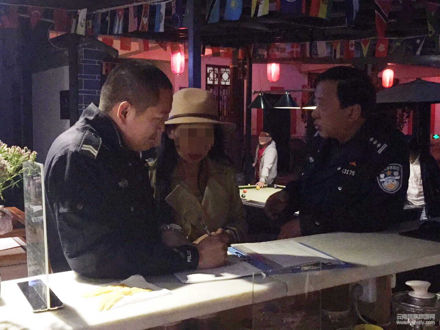 當(dāng)晚,公安機(jī)關(guān)依法對(duì)構(gòu)成未獲公安許可擅自經(jīng)營(yíng)的廖某某(男,江西人, 古城某客棧經(jīng)營(yíng)者)、鄧某某(男,湖南人, 古城某客棧經(jīng)營(yíng)者)、梁某某(男,北京人, 下關(guān)某客棧經(jīng)營(yíng)者)、楊某某(女,四川人,銀橋某客棧經(jīng)營(yíng)者)、梁某某(男,廣東人,銀橋某客棧經(jīng)營(yíng)者)給予治安拘留十日的行政處罰,對(duì)其余違法人員一并作出相應(yīng)處罰。