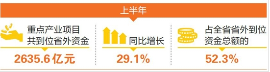 記者近日從省招商合作局獲悉,上半年,全省省外到位資金總量突破5078.5億元,重點(diǎn)產(chǎn)業(yè)項(xiàng)目共到位省外資金2635.6億元,同比增長29.1%。