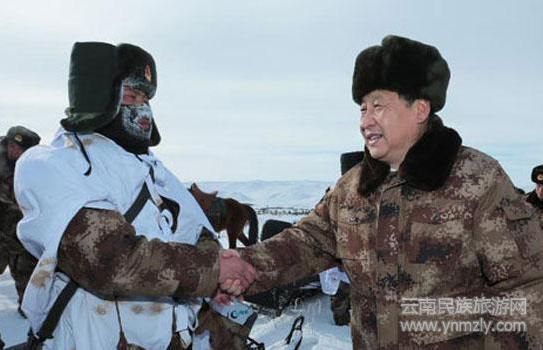 2014年1月26日,習(xí)近平來到祖國(guó)邊疆的內(nèi)蒙古阿爾山,冒著零下30多度的嚴(yán)寒慰問在邊防線上巡邏執(zhí)勤的官兵。來源:新華社