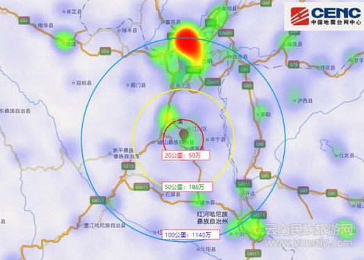 云南網(wǎng)訊 8月13日凌晨01時(shí)44分24秒,云南玉溪市通??h發(fā)生5.0級地震,震中位于北緯度24.19°,東經(jīng)度102.71°,震源深度7千米。震中距通??h10公里、距江川區(qū)12公里、距華寧縣22公里、距紅塔區(qū)25公里、距峨山彝族自治縣31公里,距玉溪市24公里,距昆明市95公里。 據(jù)移動(dòng)人口大數(shù)據(jù)分析,震中20公里范圍內(nèi)人口數(shù)約50萬,50公里范圍內(nèi)約188萬,100公里范圍內(nèi)約1140萬。