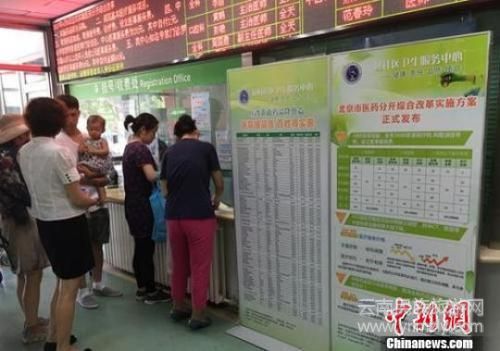 資料圖:北京一家社區(qū)醫(yī)院在掛號大廳顯著位置放置醫(yī)改重點內(nèi)容介紹以及藥品價格對比表。杜燕攝