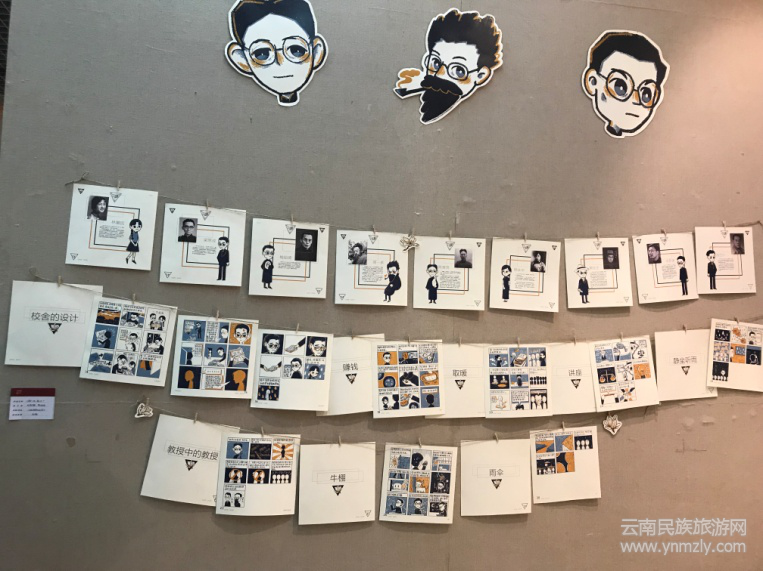 1.《趣味聯(lián)大》主題文創(chuàng)設(shè)計作品——將西南聯(lián)大的人物進行設(shè)計和創(chuàng)作,提煉人物特征用趣味的方式予以呈現(xiàn)。在眾多聯(lián)大人物中,設(shè)計者選擇了梅貽琦、聞一多、陳寅恪三個最具代表性的人物。設(shè)計者同時將聯(lián)大故事用復古感的七八十年代連環(huán)畫形式予以描繪,將故事內(nèi)容詼諧化,讓閱讀者輕松有趣的閱讀,并從中學習到聯(lián)大的歷史和精神。