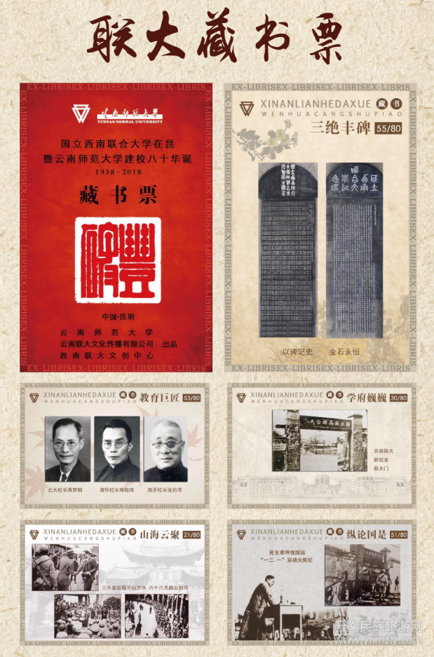 3. 發(fā)行“西南聯(lián)大藏書票”由云南師范大學資產(chǎn)經(jīng)營有限責任公司與美術(shù)學院共同開發(fā)設(shè)計的系列藏書票80枚,寓西南聯(lián)大八十華誕之意。全套三編,首編呈中國大學精神傳統(tǒng),庚續(xù)文明教化血脈;中編現(xiàn)炎黃學人,國難興邦的風骨;下編表當代學子薪火相傳、弦歌不輟、踐文化復興的腳步??胺Q一部濃縮的西南聯(lián)大校史,是當今弘揚中華傳統(tǒng)精神、構(gòu)建文化自信的實踐,極具收藏價值。