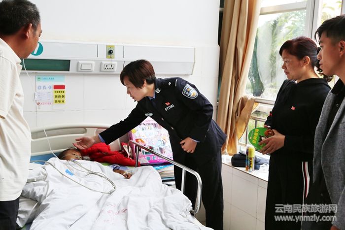 不僅如此,兩個細(xì)心的民警心里也早盤算好,怎樣幫小燕子解決看病的花費(fèi)問題。當(dāng)晚6時,兩位民警開車,帶“小燕子”及家人趕往廣南縣人民醫(yī)院。
