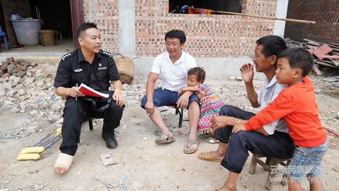 走訪中,廣南縣公安局警務(wù)保障室副主任李克輝,彰顯了基層黨員的本色和公安民警的優(yōu)良作風(fēng)。右腳受傷的他,本該請假養(yǎng)傷,可是他卻拄著拐杖也堅持要去走訪,走訪對象被他的舉動深深感動了。