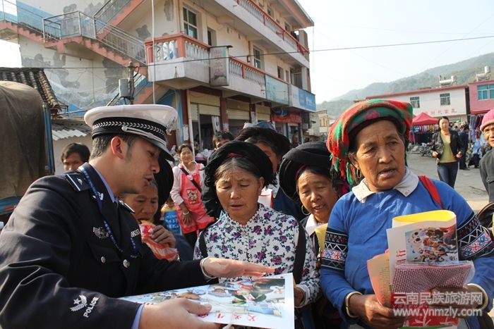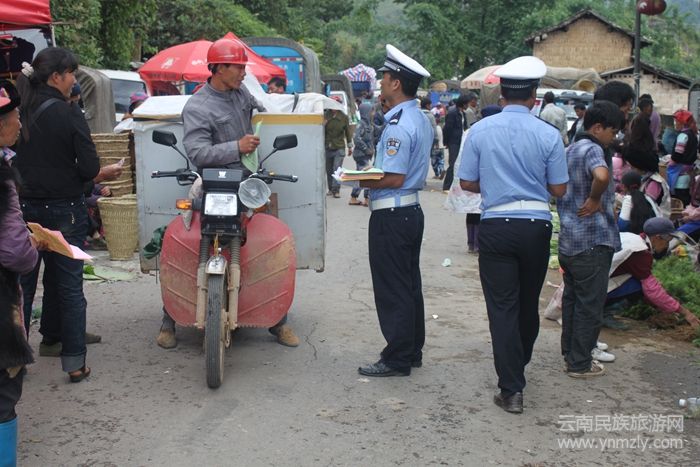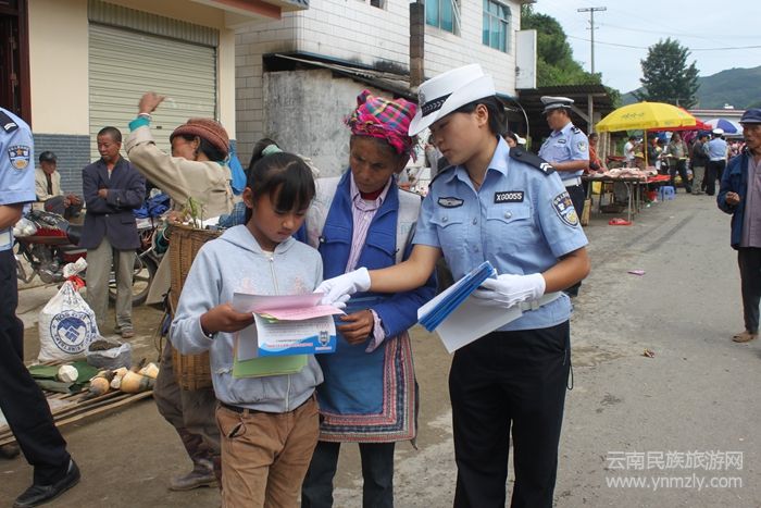每到一個街天,“趕集警組”都用少數(shù)民族群眾能聽得懂的語言,以案說法,教育廣大群眾抵制各類道路交通違法行為。引導(dǎo)群眾自覺遵守道路交通安全法,從源頭上消除道路交通安全隱患。