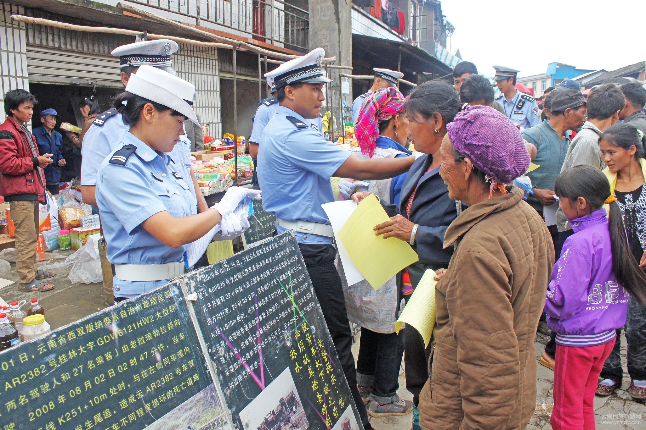 “趕集警組”還在人員較集中的地點(diǎn),大力開(kāi)展道路交通安全宣傳活動(dòng)。通過(guò)播放宣傳警示片和發(fā)放自制的交通安全宣傳撲克、圍裙、畫(huà)冊(cè)等材料,向廣大哈尼族群眾講解違反《安全法》的危害性,消除了群眾“別的車(chē)發(fā)生車(chē)禍,我坐貨廂不一定出事”的想法和僥幸心理。