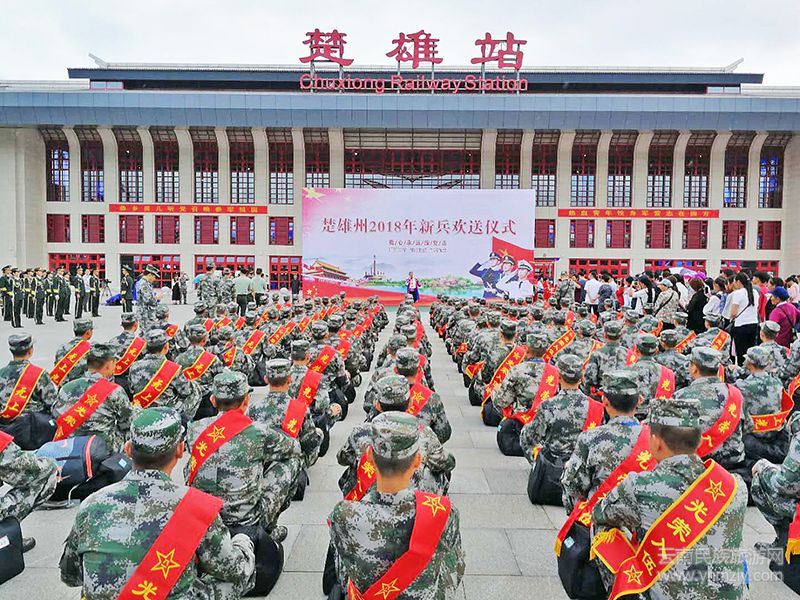 彩旗獵獵軍號(hào)響,載歌載舞送兒郎。9月14日上午,楚雄州2018年歡送新兵儀式在楚雄火車站舉行,為150名即將踏上軍旅征程、投身強(qiáng)軍偉業(yè)的彝鄉(xiāng)新戰(zhàn)士送行。