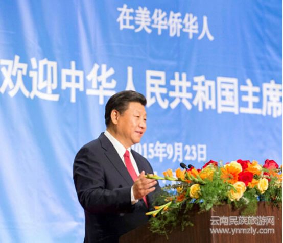 2015年9月23日,國家主席習近平和夫人彭麗媛在西雅圖出席美國僑界歡迎招待會。圖為習近平在招待會上發(fā)表講話。來源:新華社