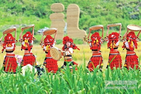 9月21日上午,一場大型田園實(shí)境演出《秋收禮祭》在廣南縣八寶鎮(zhèn)首演。作為云南春晚傳媒有限公司獨(dú)家策劃的廣南2018世界稻作文化旅游節(jié)系列活動(dòng)之一,《秋收禮祭》表演與稻田相互映襯,祭禮、稻谷生長、收獲、品嘗,一系列活動(dòng)通過舞臺(tái)表演與民眾實(shí)景展現(xiàn)融為一幅美麗畫卷,深刻展現(xiàn)出廣南的人杰地靈,山美水美,還原壯族原生態(tài)的民族民間元素,綜合體現(xiàn)出廣南的稻作文化以及廣南人民辛勤勞作、熱情好客的風(fēng)貌。本報(bào)記者 陳飛 攝