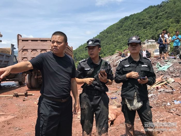 “通關(guān)派出所民警第一時間趕到災(zāi)區(qū)現(xiàn)場時,現(xiàn)場一片狼藉,許多受災(zāi)工人因個人財物被泥石流淹埋,不愿離開災(zāi)區(qū)現(xiàn)場,場面較為混亂……”