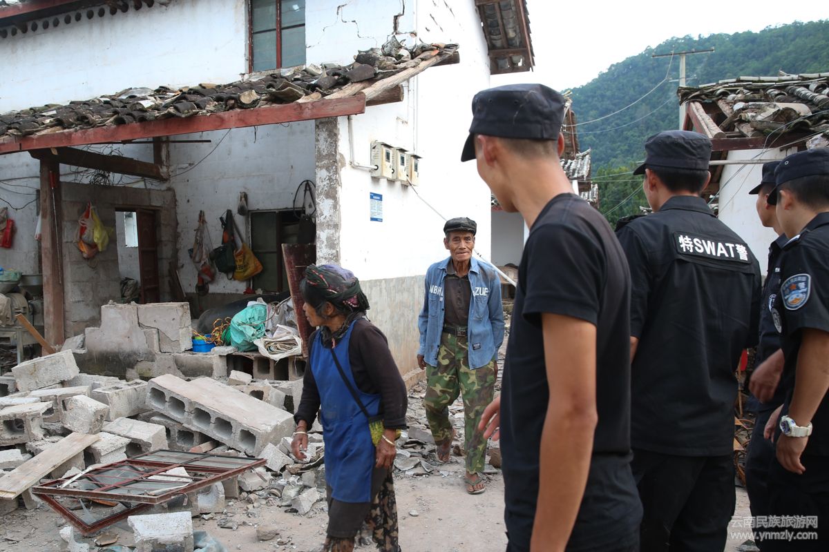 地震發(fā)生后,墨江縣公安局通關(guān)派出所作為第一批進(jìn)入震區(qū)的救援力量。在通關(guān)鎮(zhèn)牛庫村委會牛庫村民小組遇見一位因受到地震驚嚇而哭泣的老人。通關(guān)派出所教官陳光新安撫老人的一段視頻,讓人格外感動。