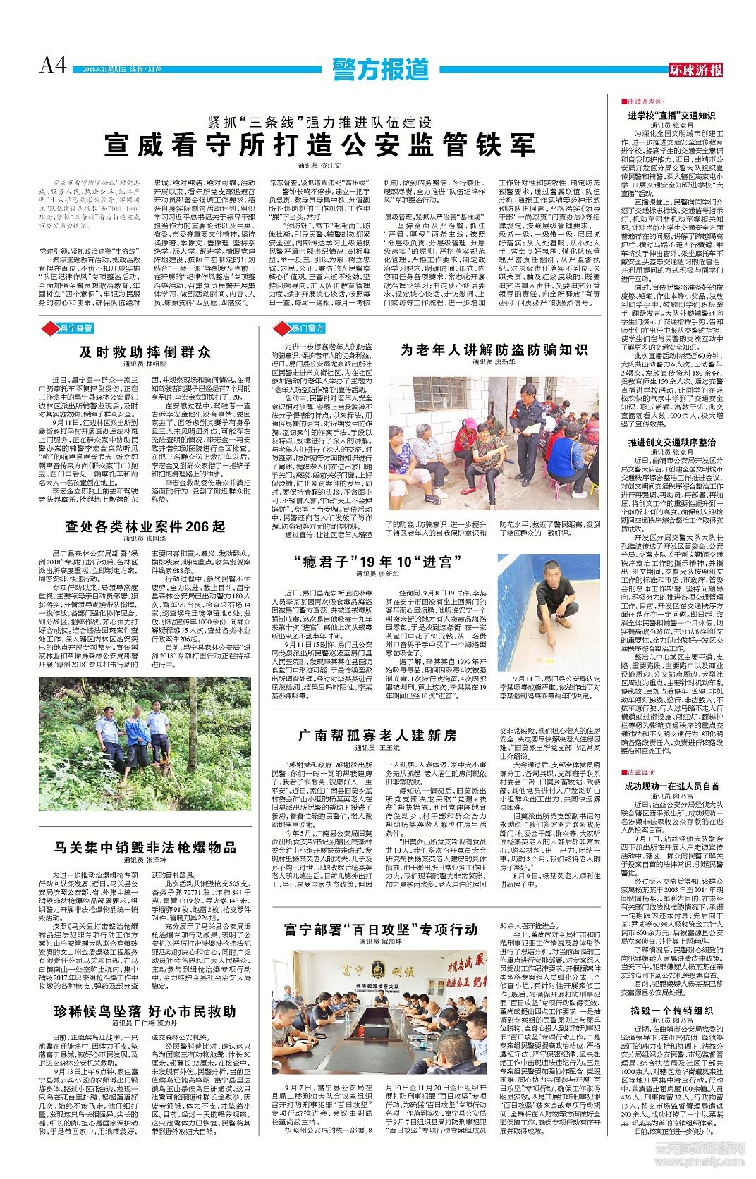 “預(yù)防針”,常下“毛毛雨”,防微杜漸,引導(dǎo)民警、輔警時刻繃緊安全弦。內(nèi)部傳達(dá)學(xué)習(xí)上級通報民警嚴(yán)重違規(guī)違紀(jì)情況,剖析典型,舉一反三,引以為戒,樹立忠誠、為民、公正、廉潔的人民警察核心價值觀。三查六巡不松勁,堅持問題導(dǎo)向,加大隊伍教育管理力度,適時開展談心談話,按照每日一查,每周一通報,每月一考核機制,做到內(nèi)務(wù)整潔、令行禁止、履職盡責(zé),全力推進“隊伍紀(jì)律作風(fēng)”專項整治行動。