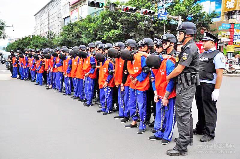 9月28日下午,楚雄市公安局組織100余名警力,武裝押解17名犯罪嫌疑人,集中開展聲勢浩大的公開辨認現(xiàn)場活動。