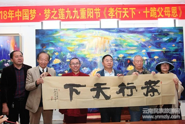 10月17日,由丁昌勝美術(shù)館主辦,隆重舉行2018年中國夢·夢之蓮九九重陽節(jié)《孝行天下 十跪父母恩》公益論壇。其內(nèi)容為中國夢·夢之蓮九九重陽節(jié)《孝行天下 十跪父母恩》論壇直播;云南精英新聞發(fā)布會(huì);健康父母行系列活動(dòng)。此活動(dòng)得到了昆明經(jīng)開區(qū)政府的大力支持,參加活動(dòng)的人數(shù)來自社會(huì)各專家,學(xué)者,退休領(lǐng)導(dǎo),醫(yī)生,企業(yè)家及各階層社會(huì)精英,歡聚一堂,匯集在丁昌勝美術(shù)館,暢談道德、善行、孝道文化,活動(dòng)采取交流、座談的方式,大家輕松、自然、顯得時(shí)而清靜、時(shí)而熱烈,時(shí)而又抒發(fā)感情、講到情處還有激情。歲歲重陽,今又重陽。重陽是中華民族的傳統(tǒng)節(jié)日,又稱重九節(jié)、曬秋節(jié)、“踏秋”。重陽節(jié)早在戰(zhàn)國時(shí)期就已經(jīng)形成,到了唐代被正式定為民間的節(jié)日.今天讓九九重陽節(jié),過出文化味。
