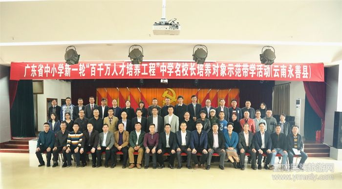 華南師范大學(xué)朱富生、林振南、溫小惠,以及廣東省中小學(xué)新一輪“百千萬(wàn)人才培養(yǎng)工程”中學(xué)名校長(zhǎng)培養(yǎng)項(xiàng)目20名名校長(zhǎng)及16名名師名校長(zhǎng)工作室骨干成員,永善縣教育局班子成員,城區(qū)各中學(xué)及部分鄉(xiāng)鎮(zhèn)中學(xué)教學(xué)管理者及教師代表等300余人參加啟動(dòng)儀式。