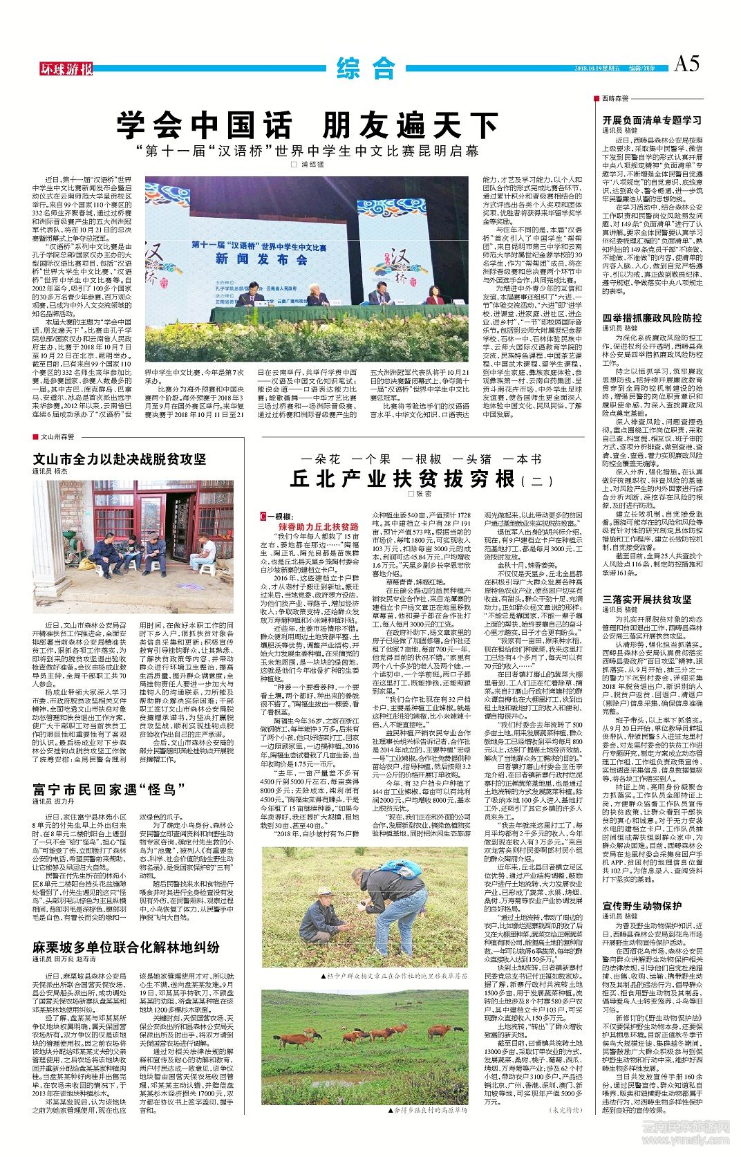 為增進中外青少年的互信和友誼,本屆賽事還組織了“六進、一節(jié)”體驗交流活動,“六進”即“進學校、進課堂、進家庭、進社區(qū)、進企業(yè)、進鄉(xiāng)村”,“一節(jié)”即校園國際音樂節(jié)。包括到云師大附屬世紀金源學校、石林一中、石林體驗民族中學、云師大國際漢語教育學院的交流,民族特色課程、中國茶藝課程、中國武術(shù)課程、留學生課程,到中學生家庭、彝族家庭體驗,參觀彝族第一村、云南白藥集團、呈貢斗南花卉市場,中外學生足球友誼賽,使各國師生更全面深入地體驗中國文化、民風民俗,了解中國發(fā)展。(文章來源環(huán)球游報2018年10月19日第1161期A5版)