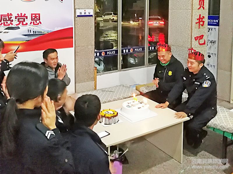 “祝你生日快樂(lè)!祝你生日快樂(lè)……”10月10日22時(shí),一首《生日祝福歌》在易門(mén)縣公安局龍泉派出所值班室響起,在戰(zhàn)友們的祝福聲中,兩名同天生日又同天值班的民警在值班崗位上度過(guò)了一個(gè)難忘的生日。